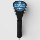 Here is the perfect golf club cover for those that enjoy drinking and playing golf. Funny golf joke "My drinking club has a golfing problem". Design features a frothy beer mug and a white golf ball. Blue and black stripe background. Great golf gift.
