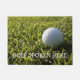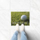 Funny golf theme home welcome mats with image of a golf ball on the grass and humorous saying Golf Spoken Here. Deigned as a humorous housewarming gift for guys or place this in front of your own home for the golf fanatic.