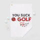 Embarrass your golf lovin' hubby with this funny golf towel that 1. tells him he sucks and 2. lets everyone know he has a hot wife!