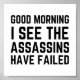 Funny sarcastic quote saying Good morning I see the assassins have failed.