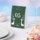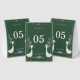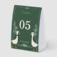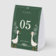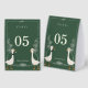 Add a touch of charm and humor to your celebration with this whimsical goose table number sign, featuring an adorable pair of geese dressed for the occasion—one with a bow tie and the other with a floral hat. Set against a rich green background with delicate vintage-style line art, this design perfectly blends elegance with playful personality.