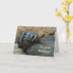 A big black gorilla reclines against a rock with an amazed look on his face on the front of this funny birthday card. The text in white says "It's your Birthday?". The inside says "I'll try to stifle any primal screams" and then in smaller italicized text, "Hope it's a happy one!" All the text, front and inside, is easy to customize, so you may make it say whatever you'd like. Use your imagination!