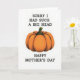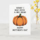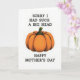 This card features a plump, segmented gourd centered on a bright white background, colored in warm orange with tiny speckled dots that make it look gently textured. A short, dark green stem sits at the top, giving the simple shape a grounded, natural touch. Above the gourd, dark serif lettering is set in a neat line and reads “SORRY I HAD SUCH A BIG HEAD,” adding a teasing, friendly tone ❤️. Below the illustration, a second line of the same dark serif text reads “HAPPY MOTHER’S DAY,” spaced to mirror the top line and frame the image. The straightforward layout feels like an affectionate inside joke, as if the sender is smiling while saying it. The contrast between the soft, rounded vegetable and the direct wording creates a light, sweet kind of closeness, like a warm hug with a wink 🌼. The orange gourd sits centered between the two dark text lines on the white field, with the green stem pointing upward.