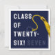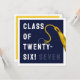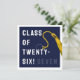 Creative graduation card for Class of '26 graduate featuring navy blue grad cap, gold tassel and funny line. To personalize edit text to add his or her name.