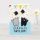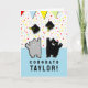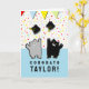 Cute graduation card featuring funny cartoon cats throwing caps into the air. To personalize, edit text to add name of grad.