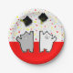 Cool cat-themed graduation party plates featuring funny cats throwing grad caps, for veterinarian school veterinarian graduation party or schools with cat mascots.