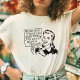 This humorous t-shirt for grammar nerds shows a vintage woman holding up a sign. It says, "When you practice safe text, you never miss a period." It's perfect for a writer, editor, English teacher or any literary snob. The design is all black.