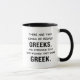 This funny Greek mug says, "Two Kinds of People: Greeks and Everyone Else Who Wishes They Were Greek." Great for celebrating Greece's Independence Day. A wonderful gift for proud Greeks that shows off their pride and sense of humor. It's ideal for birthdays, holidays, and other special occasions.