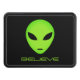 Believe...Funny green alien head custom tow hitch cover. Personalize with your own space quote or text. Cool gifts for Birthday, sci fi events and more. Alien cartoon with big black eyes.