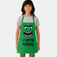 Funny green cooking monster baking apron for kids. Personalized kitchen and cooking aprons for children. Fun cartoon design with big eyes and mouth with sharp teeth. Add your own name or funny quote. Create your own unique Birthday party gift for son, daughter, nephew, brother, sister, friend, cousin etc. Available in small and large sizes. Also great for BBQ, kid's dinner party, art & crafts projects, drawing, baking, painting, Halloween and more. Green or custom color background. Green strap.