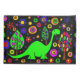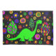 Fun green brontosaurus dinosaur and colorful trees abstract pillowcase original art.