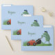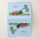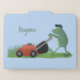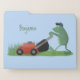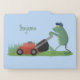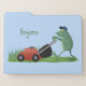 Funny green frog mowing lawn cartoon file folder
