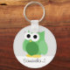 Cute custom keychain featuring an illustration of a green owl and personalized with your name or text. Great for owl lovers, as a gift, or can be given as party favors at a baby shower.