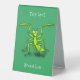 Funny green praying mantis cartoon illustration table tent