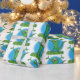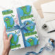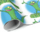Funny green smiling animated iguana lizard wrapping paper