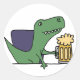 Funny Green T-Rex Dinosaur Drinking Beer Classic Round Sticker