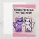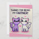 Add a touch of humor and a smile to your gift with this adorable and funny greeting card. Featuring a charming cartoon design of two cute cats and a playful phrase that reads, "Thanks for Being My Fartner," this card is ideal for various occasions.
