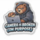 End Zoom fatigue with this high-detail comic grizzly bear sticker. Featuring a grumpy bear in a hoodie taping over a laptop camera, this "Camera is Broken (On Purpose)" decal is the ultimate gift for remote workers and office staff. A funny and bold addition to any workstation.