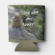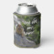 Funny angry looking ground squirrel with internet meme slogan "Get off my lawn" on can cooler.