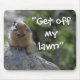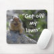 Funny angry looking ground squirrel with internet meme slogan "Get off my lawn" on mousepad.
