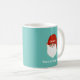Funny grumpy Christmas gnome on teal Mug. Text can be personalized.