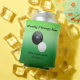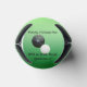 Pictured on a green gradient background is a black lawn bowl and jack with a funny grumpy man