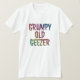 Get a laugh with this 'grumpy old geezer' t-shirt. Multi-colored design, made to appear slightly 3-d. Shirt is available in a variety of styles and different colors.