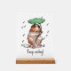 A cute guinea pig with a positive reminder on an acrylic sign. Use "Personalize this template" to tweak the "Keep smiling!" text and make a unique, customized item. Featuring a funny guinea pig dancing in the rain, with a tasty nasturtium leaf for an umbrella. They say that faking a smile can actually change your mood!