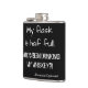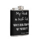 Funny and quirky slogan hip flask with text "My glass is half full. Who's been drinking my beer?!" quoted paranoid optimist.