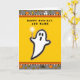 Creative Halloween birthday card featuring funny ghost with a birthday cake candle. Add his or her name to personalize.