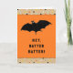 Creative Halloween card featuring funny bat design and baseball-themed line.