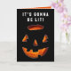 Funny Halloween card featuring lit Jack-o'-lantern glowing.