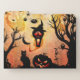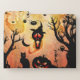 Funny halloween design, pumpkin, cat, owl and crow
