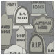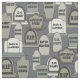 Get ready for some spooky fun with the Halloween gravestones on this fabric. Gravestones have names like "I.M. Scary", "Autumn Webb", "Candy Ghoul", "Wolf Howl", Jack O. Lantern", and more, in shades of gray. Original art © Anne Coffey.
