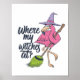 Funny Halloween Pink Flamingo Where My Witches At Poster