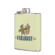 Well made flask, a little better than I had expected. Flask came in clear plastic box which gave it a nice presentation when I took it out of the zazzle packaging. Image is not printed on flask but on sticker. Don't know how this will hold up I haven't used it yet. This would make a Great gift! I plan to purchase more for friends! Cheers. I thought a little brighter than computer. Very crisp, writing wasn't