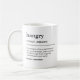 Funny personalized coffee mug featuring the dictionary-style definition of hangry with custom name. Modern black typography and clean minimalist design make it a stylish and unique gift. Perfect for friends, coworkers, or family who get “hangry” — a must-have for anyone you always carry a snack for! Ideal for birthdays, Christmas, or any occasion. Create a one-of-a-kind mug that will make them laugh every time they sip their coffee or tea.
