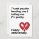 The “Thank You for Feeding Me & Telling Me I'm pretty. Happy Anniversary” design is a humorous and charming anniversary gift that reflects gratitude and love. It's perfect for anniversaries, weddings, milestones, and romantic relationships. The design is blank inside for a personal message, making it a thoughtful and cute gift for your partner.