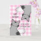 My cartoon drawing of a gray tabby cat showing it's angelic side on a background of light pink gingham. Change any of the text for any other occasion.
