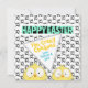 With two cartoon crazy eyed chickens on a chicken foot print background in front and another two crazy chickens peeking-in on a simple, chic black background on the back, this one's just so much fun!