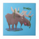 Funny happy moose cartoon illustration ceramic tile