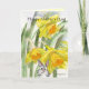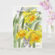 A cartoon bunny rabbit cutely peaking out from some bright yellow watercolor daffodils- the perfect combo card to wish mom a Happy Mothers Day.