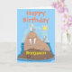 Funny happy walrus cartoon illustation cartoon card
