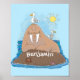 Funny happy walrus cartoon illustration poster