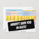 Haven't seen you in ages is the message on this funny hello postcard with a geological chart of ages in the background. Great for science geeks or long lost friends.