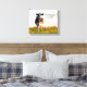 If you love cows then this funny canvas art of a black and white Holstein heifer dairy cow in a colorful autumn pasture is sure to be a great addition to a small space. The customizable black text says: Outstanding in my field".