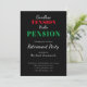 This humorous invitation says, goodbye tension hello pension. With a dollar sign as the letter, 's', it's targeted to the US market. Your guests will love this simple invitation with its bold typography. On a black background, the white text will pop.