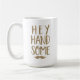 Our Hey Handsome coffee mug makes for a great gift and is sure to put a smile on the recipient every time they use it. Our design features a fun faux gold typographic design that says "Hey Handsome" in a fun typeface. The perfect gift for him!
