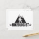 HIKEOLOGIST. Humorous title for someone who loves hiking - and, who has a sense of humor. Makes a unique and funny gift for a hiker, trekker, mountain climber. A black and white design that features tall, snow-capped mountains in the background and a hiker with backpack in the foreground. Find more funny designs like this one at the Ologist Shop.