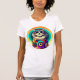 I love wearing a reprint of my colored pencil drawing of Annie the cat looking over the hillside. My illustration is based on a picture I took of Annie the manx cat. The printing turned out lovely, and the shirt is soft and thick. The American Apparel shirt run on the smaller size, so I always order a large or extra large.